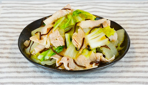 2. 將白菜、部長和豬肉依序放入耐熱容器中